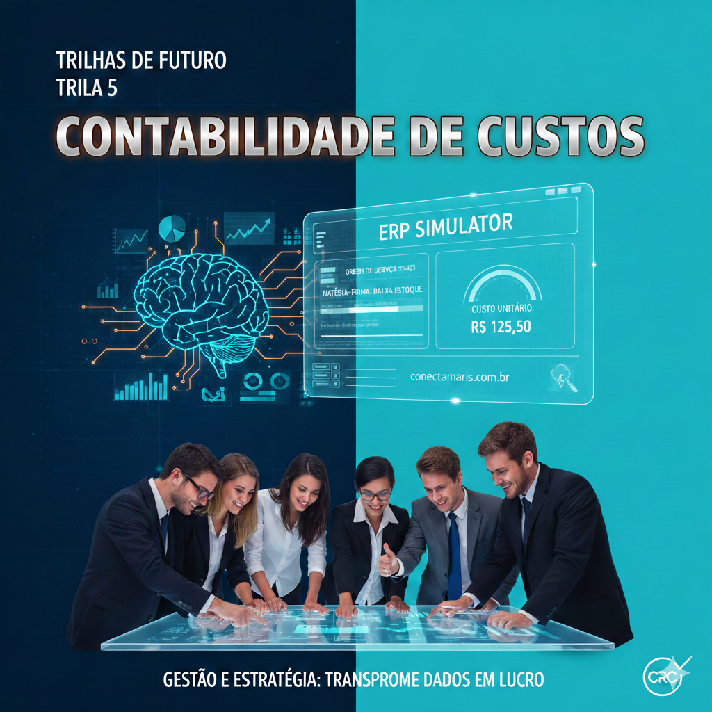 O diferencial desta trilha é a Metodologia Prática 4.0: os alunos não ficam restritos à teoria. Através da plataforma Conecta Maris, você terá acesso a um Simulador de ERP exclusivo, onde gerenciará Ordens de Serviço reais, fará o apontamento de matéria-prima e mão de obra, e processará o rateio de custos indiretos em um ambiente digital idêntico ao das grandes indústrias.